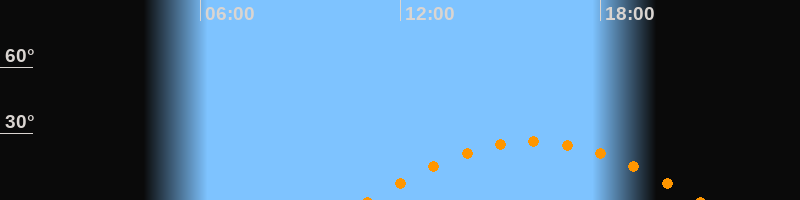 | Höchster Stand (Kulmination) | 15:59 Uhr (h = 26,3°) |