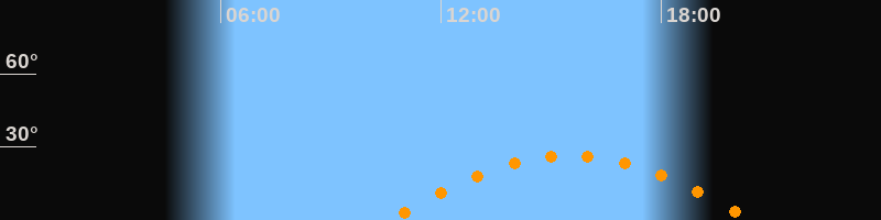 | Aufgang | 10:34 Uhr im Osten (αAz = 110°) |