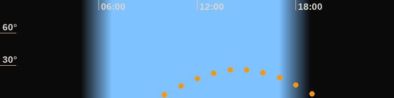 | Höchster Stand (Kulmination) | 14:33 Uhr (h = 26,3°) |