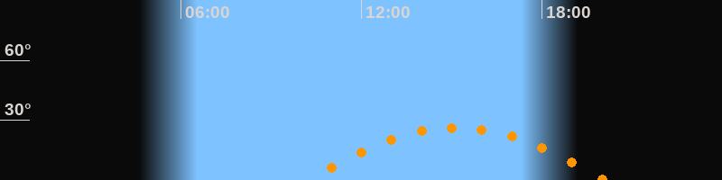 | Aufgang | 10:11 Uhr im Osten (αAz = 110°) |