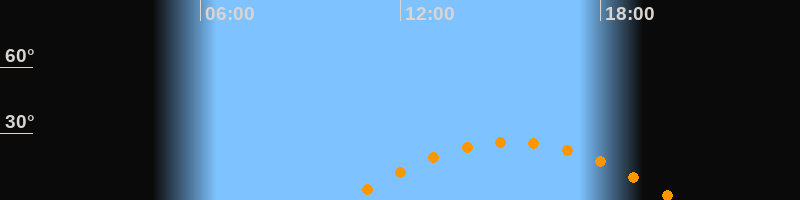 | Höchster Stand (Kulmination) | 15:20 Uhr (h = 26,3°) |