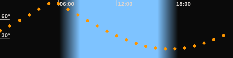 | Höchster Stand (Kulmination) | 05:29 Uhr (h = 87,4°) |