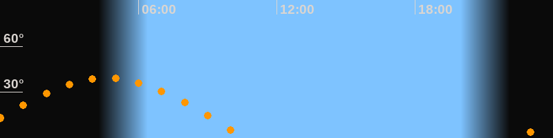 | Untergang | 10:38 Uhr im Westen (αAz = 270,6°) |