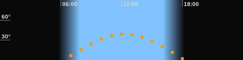 | Höchster Stand (Kulmination) | 12:16 Uhr (h = 39,2°) |