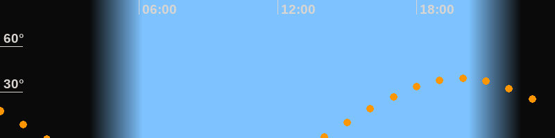 | Untergang | 02:00 Uhr im Westen (αAz = 270,6°) |