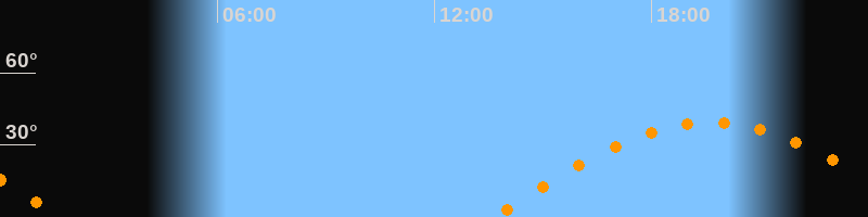 | Aufgang | 13:36 Uhr im Osten (αAz = 89,4°) |