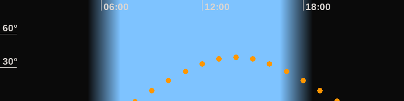 | Höchster Stand (Kulmination) | 14:00 Uhr (h = 39,2°) |