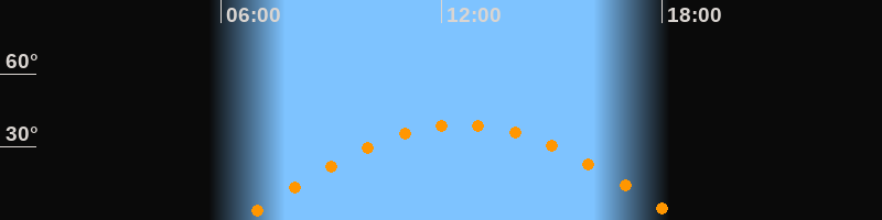 | Höchster Stand (Kulmination) | 12:33 Uhr (h = 39,2°) |
