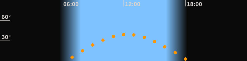 | Höchster Stand (Kulmination) | 12:20 Uhr (h = 39,2°) |