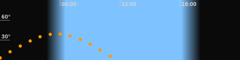 | Untergang | 11:41 Uhr im Westen (αAz = 270,6°) |