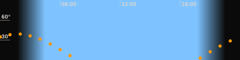 | Aufgang | 19:37 Uhr im Osten (αAz = 89,4°) |