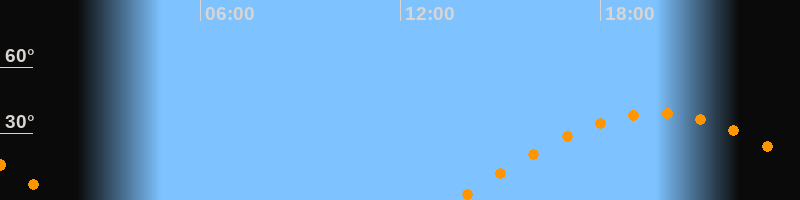 | Aufgang | 13:40 Uhr im Osten (αAz = 89,4°) |