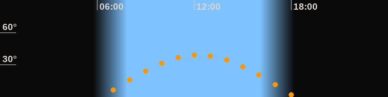 | Höchster Stand (Kulmination) | 12:15 Uhr (h = 39,2°) |