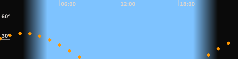 | Untergang | 08:24 Uhr im Westen (αAz = 270,6°) |