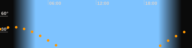 | Aufgang | 19:28 Uhr im Osten (αAz = 89,4°) |