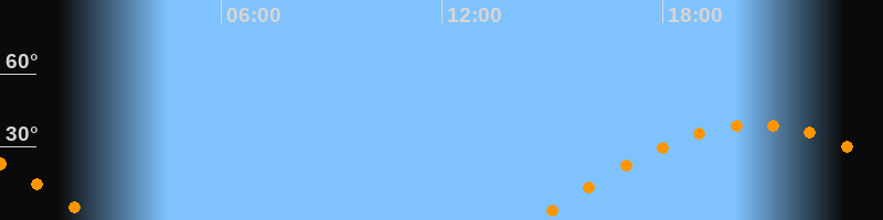 | Aufgang | 14:29 Uhr im Osten (αAz = 89,4°) |