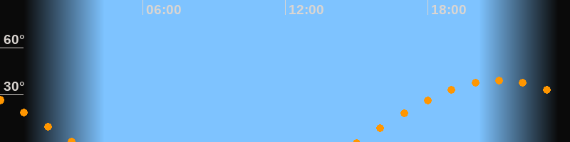 | Untergang | 03:06 Uhr im Westen (αAz = 270,6°) |