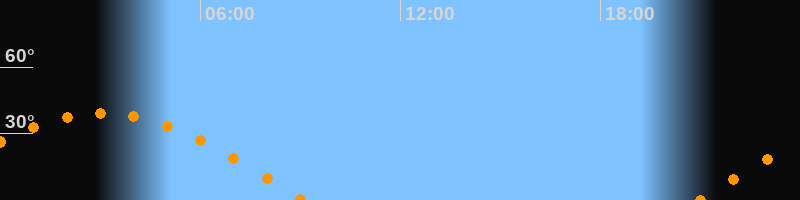 | Untergang | 09:05 Uhr im Westen (αAz = 270,6°) |