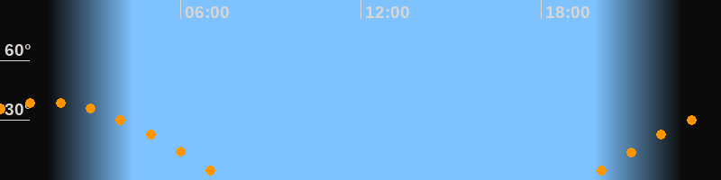 | Aufgang | 19:26 Uhr im Osten (αAz = 89,4°) |