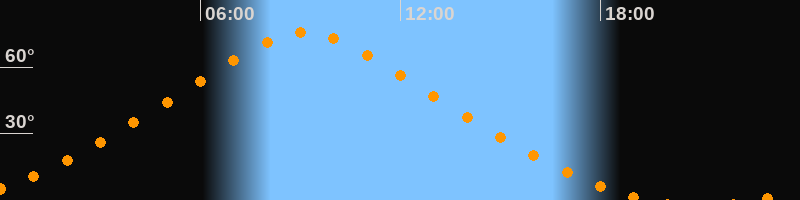 Höchster Stand (Kulmination)09:08 Uhr (h = 75,7°)