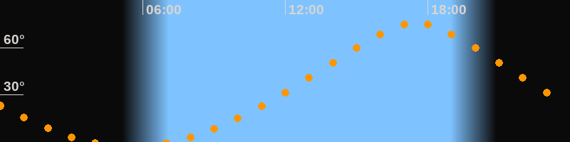 Höchster Stand (Kulmination)17:29 Uhr (h = 75,7°)