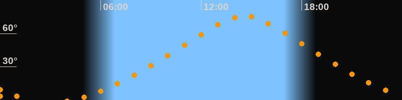 Höchster Stand (Kulmination)14:34 Uhr (h = 75,7°)