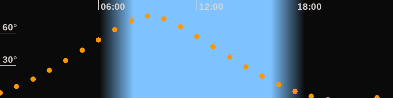 Höchster Stand (Kulmination)09:09 Uhr (h = 75,7°)
