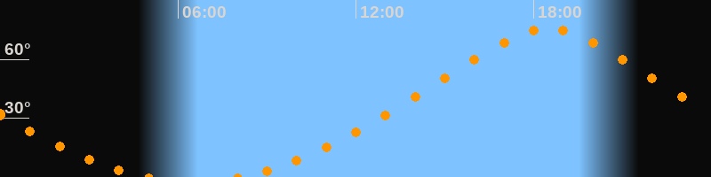 Höchster Stand (Kulmination)18:29 Uhr (h = 75,7°)