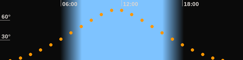 Höchster Stand (Kulmination)11:30 Uhr (h = 75,7°)