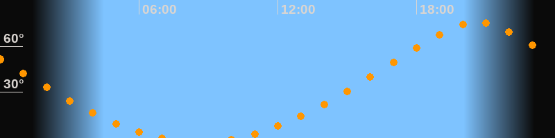 Höchster Stand (Kulmination)20:36 Uhr (h = 75,7°)