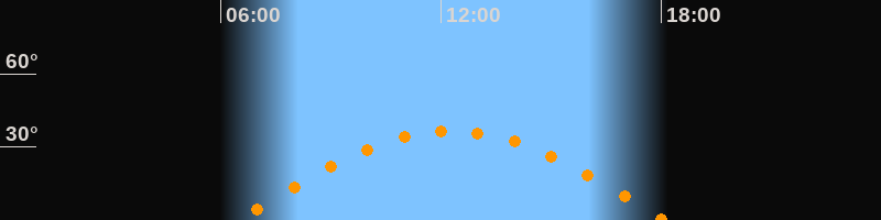 Höchster Stand (Kulmination)12:17 Uhr (h = 36,5°)