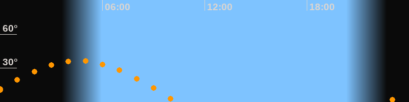 | Höchster Stand (Kulmination) | 04:34 Uhr (h = 36,5°) |