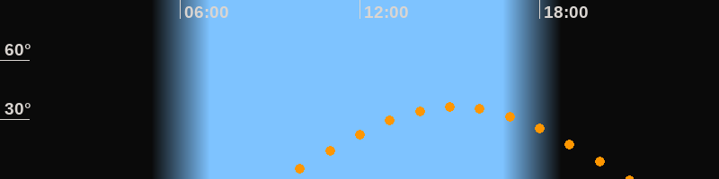 | Höchster Stand (Kulmination) | 15:11 Uhr (h = 36,5°) |