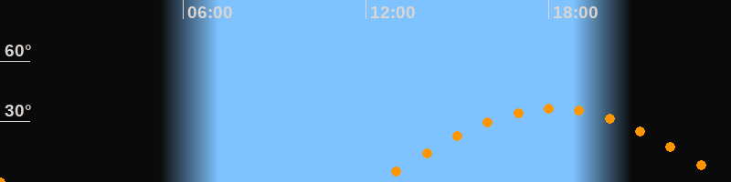 | Höchster Stand (Kulmination) | 18:10 Uhr (h = 36,5°) |
