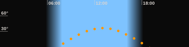 | Höchster Stand (Kulmination) | 13:02 Uhr (h = 36,5°) |