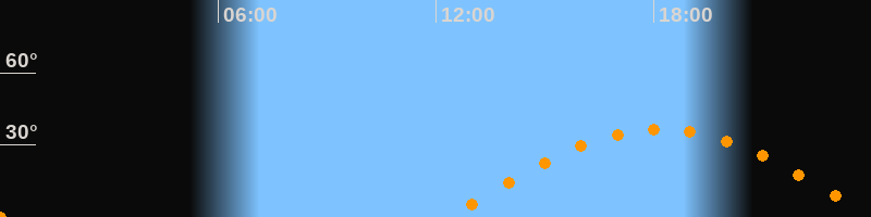 | Höchster Stand (Kulmination) | 18:11 Uhr (h = 36,5°) |
