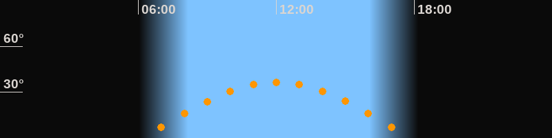 | Höchster Stand (Kulmination) | 12:00 Uhr (h = 36,5°) |