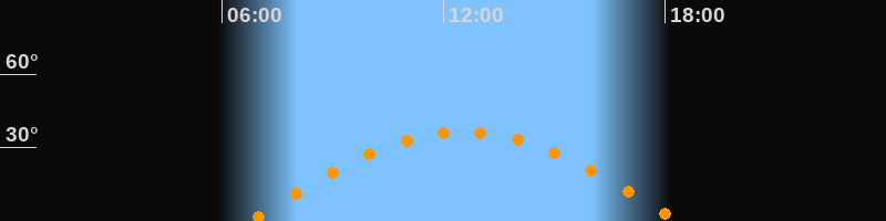 | Höchster Stand (Kulmination) | 12:33 Uhr (h = 36,5°) |