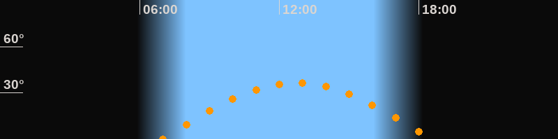 | Höchster Stand (Kulmination) | 12:44 Uhr (h = 36,5°) |