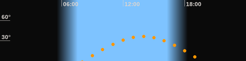 | Höchster Stand (Kulmination) | 13:53 Uhr (h = 36,5°) |