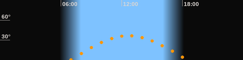 | Höchster Stand (Kulmination) | 12:41 Uhr (h = 36,5°) |