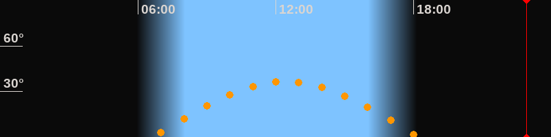 | Höchster Stand (Kulmination) | 12:25 Uhr (h = 36,5°) |