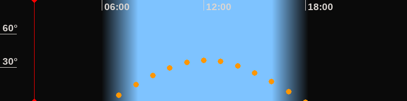 | Höchster Stand (Kulmination) | 12:10 Uhr (h = 36,5°) |