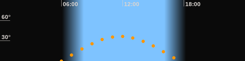 | Höchster Stand (Kulmination) | 11:46 Uhr (h = 36,5°) |