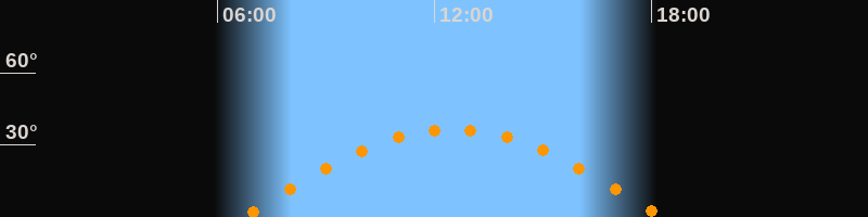 | Höchster Stand (Kulmination) | 12:30 Uhr (h = 36,5°) |