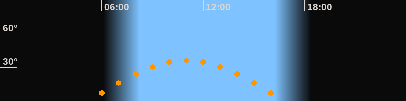 | Höchster Stand (Kulmination) | 11:00 Uhr (h = 36,5°) |