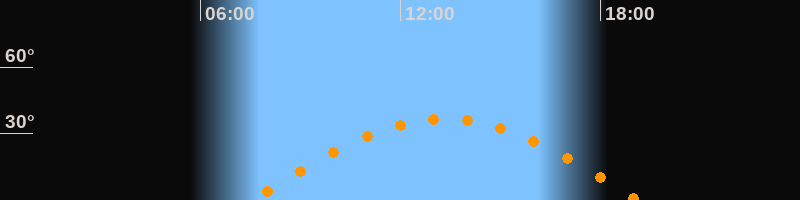 | Höchster Stand (Kulmination) | 13:19 Uhr (h = 36,5°) |