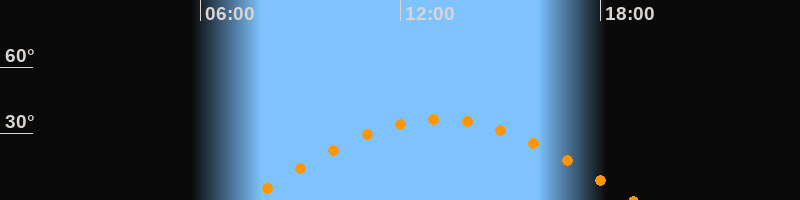 | Höchster Stand (Kulmination) | 13:12 Uhr (h = 36,5°) |
