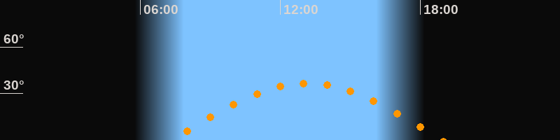 | Höchster Stand (Kulmination) | 13:08 Uhr (h = 36,5°) |