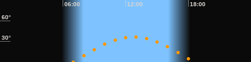| Höchster Stand (Kulmination) | 12:45 Uhr (h = 36,5°) |